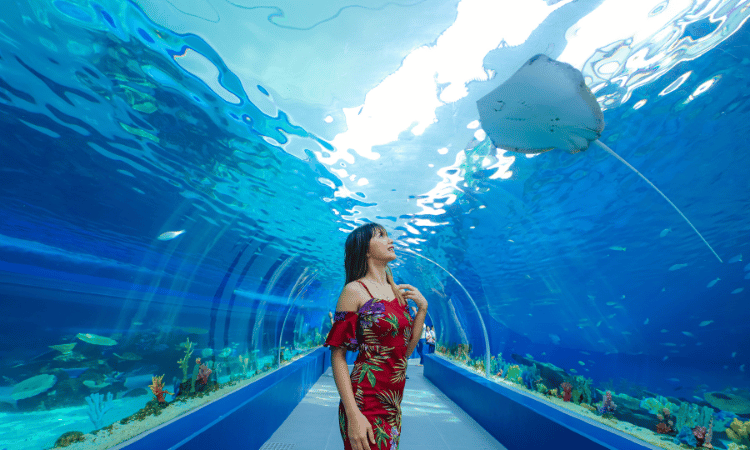 今話題のシーウォーカーをセブで挑戦!ヘルメットを被って海へ飛び込んだら綺麗な魚たちが目の前に!事前に渡される餌をあげると、目の前を覆い尽くすほどの大量の魚がやってきます。