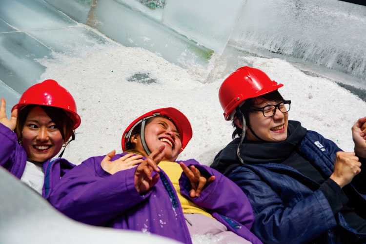 ツルツルの氷の床を自分の体で滑る体験は、ここでしかできません。