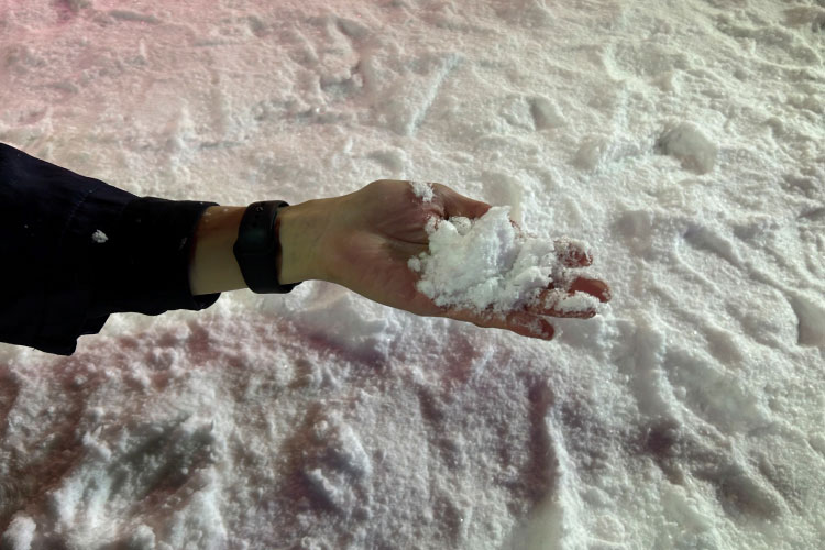 写真のように手に取ることができるほどの雪を体験することができます。