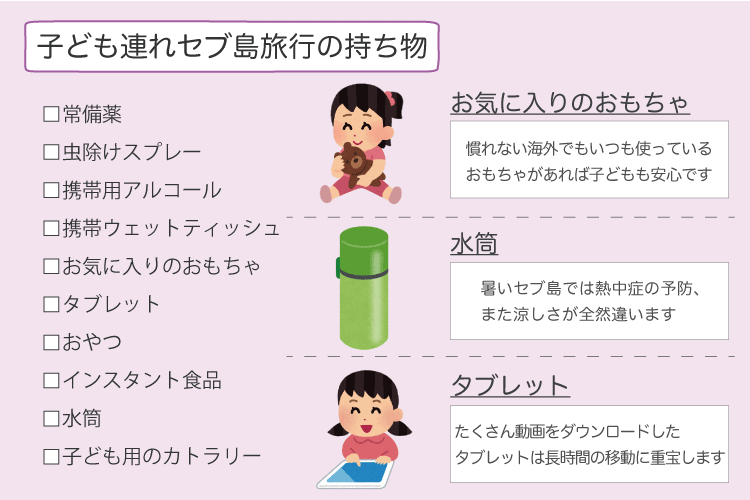 子ども連れセブ島旅行は入念に持ち物をチェック