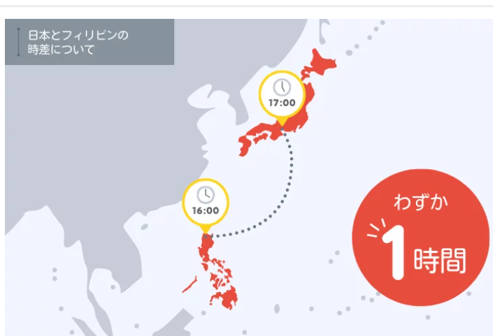往復の移動後も体がラク。日本とセブ島の時差はたったの1時間。