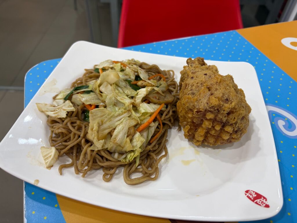 麺料理なのに野菜もしっかり入っていて、ファストフードとは思えないボリューム。味は日本の焼きそばより少しマイルドな感じです。