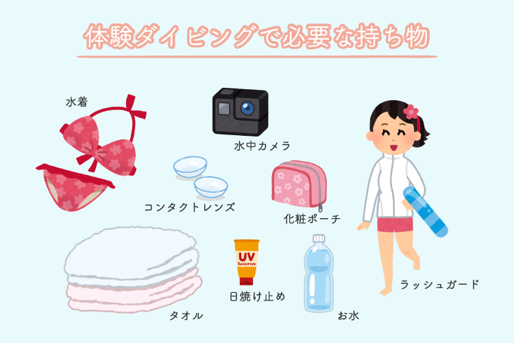 また基本的に体験ダイビングではレンタル用品が全てついていますが、あらかじめ確認しておくことが肝心。