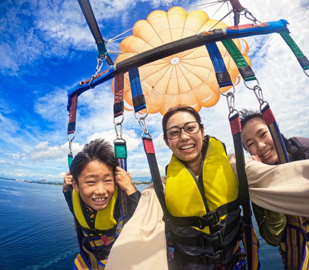 パラセーリングは、アイランドホッピングのマリンスポーツオプションとして参加可能です🪂