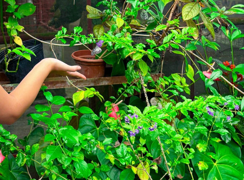 入り口を抜けてまず案内されるのが、カラフルな蝶々が飛び交うガーデン!