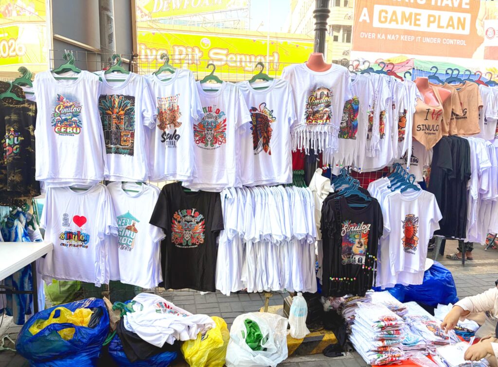 街の至る所で目に入るのが、シヌログ祭Tシャツや髪飾りの販売。