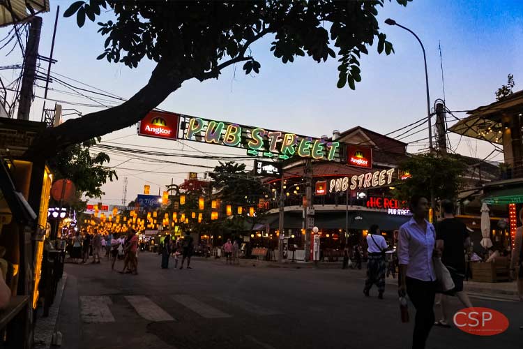 夜になると、パブストリートは多くの観光客や地元の人々が集まります。このエリアでは、さまざまなレストランやバーが軒を連ね、ココナッツミルクを使った日本人好みのマイルドなカンボジア料理を楽しむことができます。