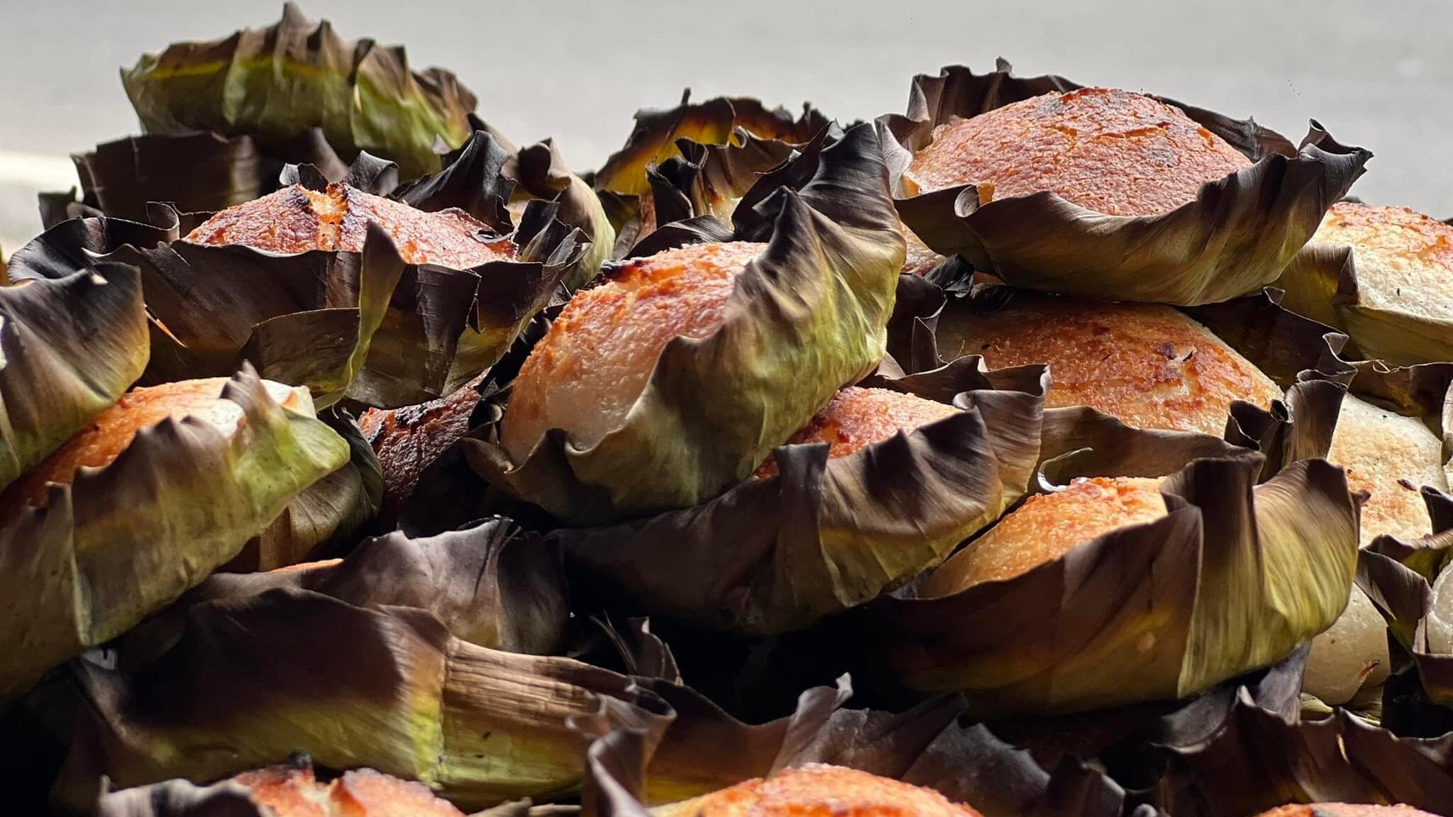 Made from rice flour, coconut milk, sugar, and eggs, cooks pour the batter into banana leaf-lined clay pots, then bake it until the edges turn golden while the center stays soft and chewy.