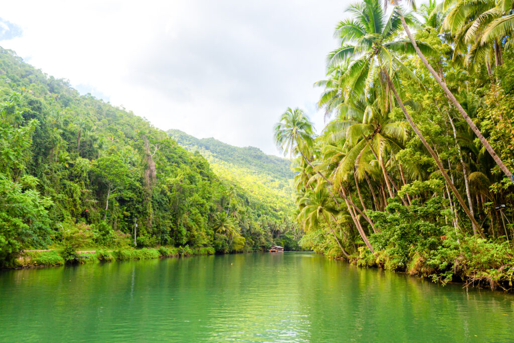 エメラルドグリーンに輝く川の絶景を眺めながら、船上でフィリピン料理のビュッフェを楽しめる贅沢なクルージング🚢