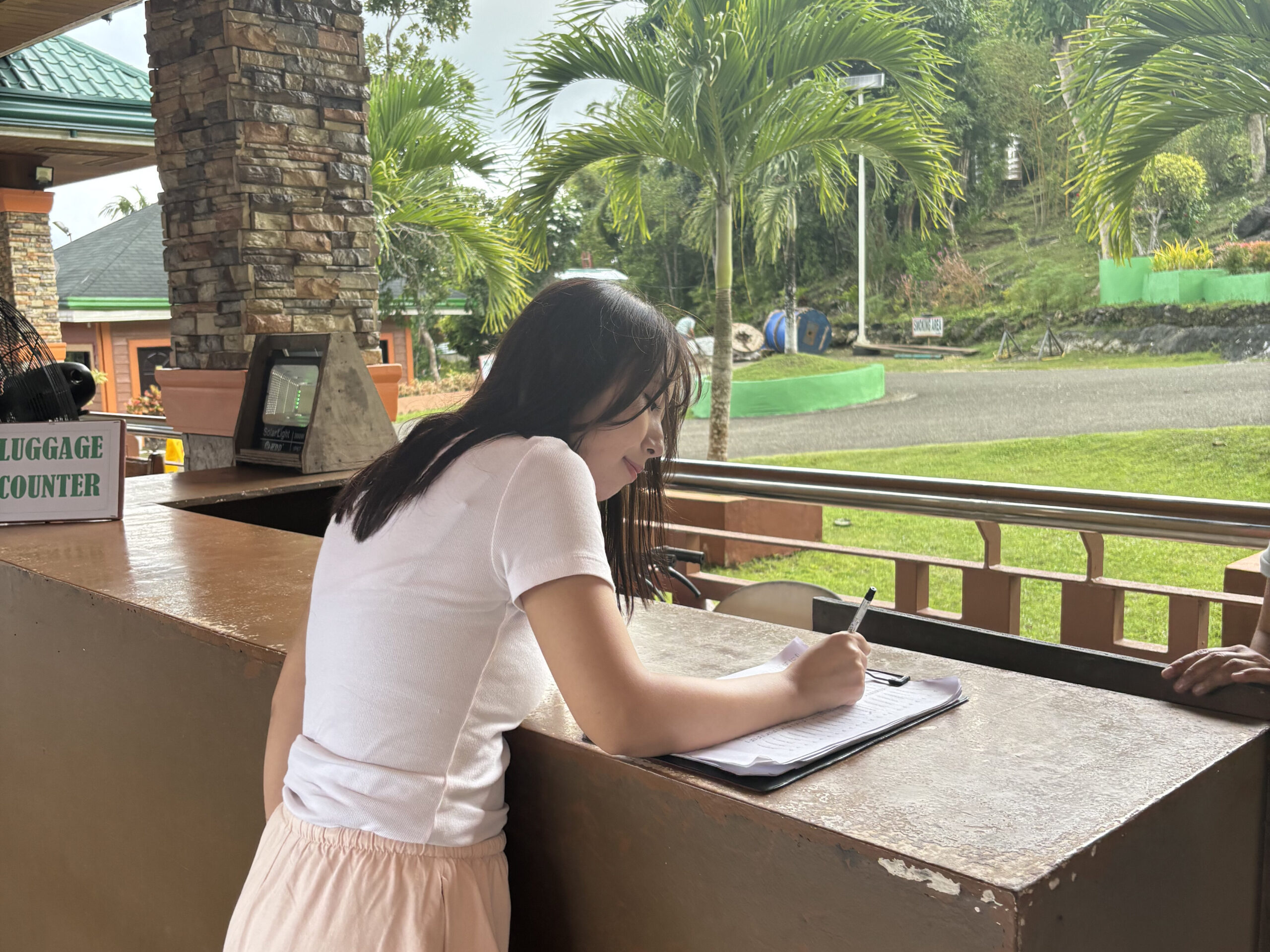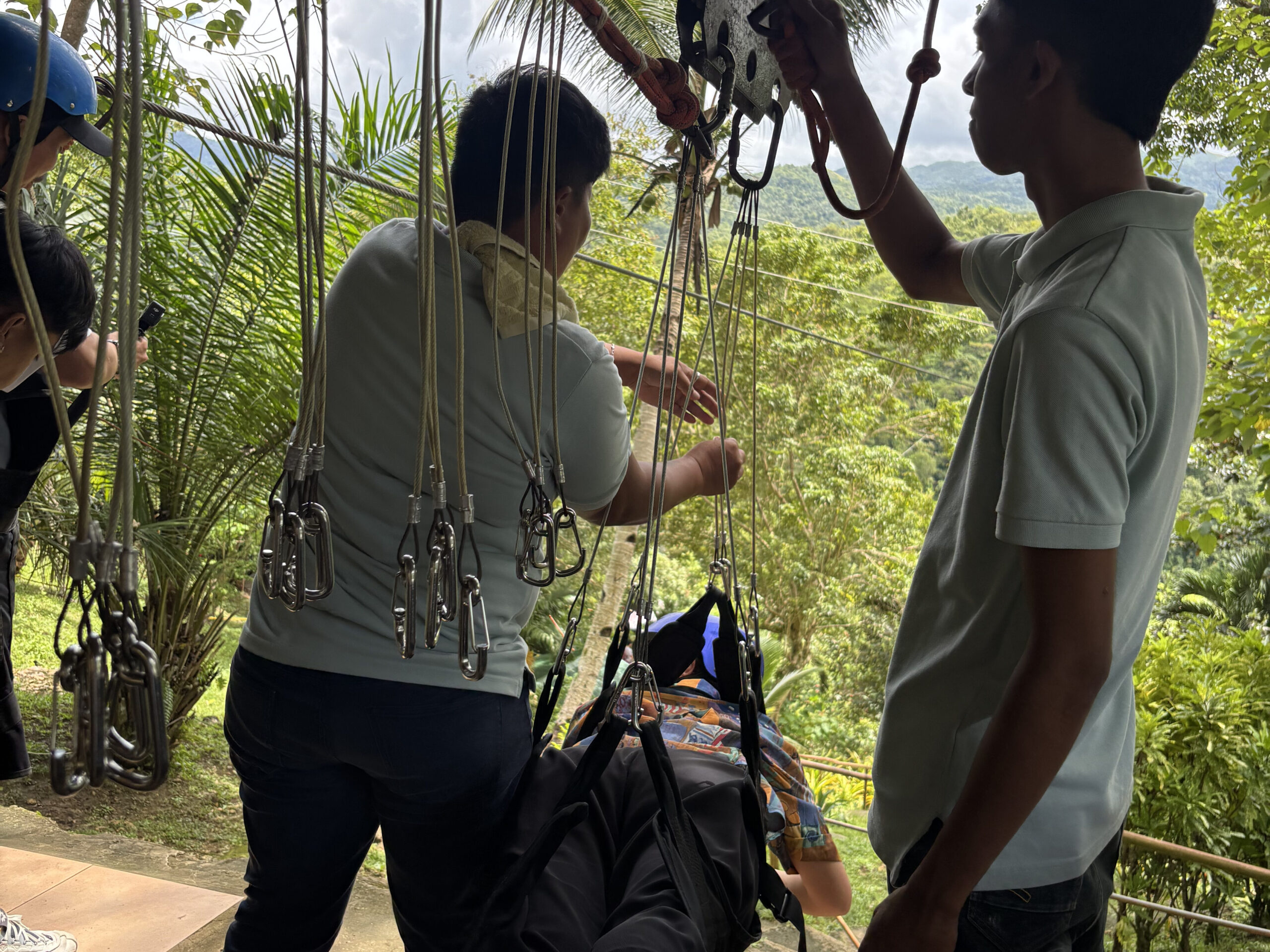 受付で名前を伝え、料金(約700ペソ)を支払います。英語が苦手でもスタッフさんがゆっくり説明してくれるので安心。「スリルあるけど景色最高だよ!」と笑顔で声をかけてくれました!