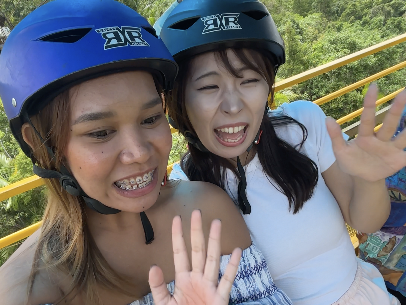 まずはケーブルカーに乗って、ジップラインのスタート地点である山頂へ向かいます。ケーブルカーに乗る段階で、安全面のためヘルメットを装着します。